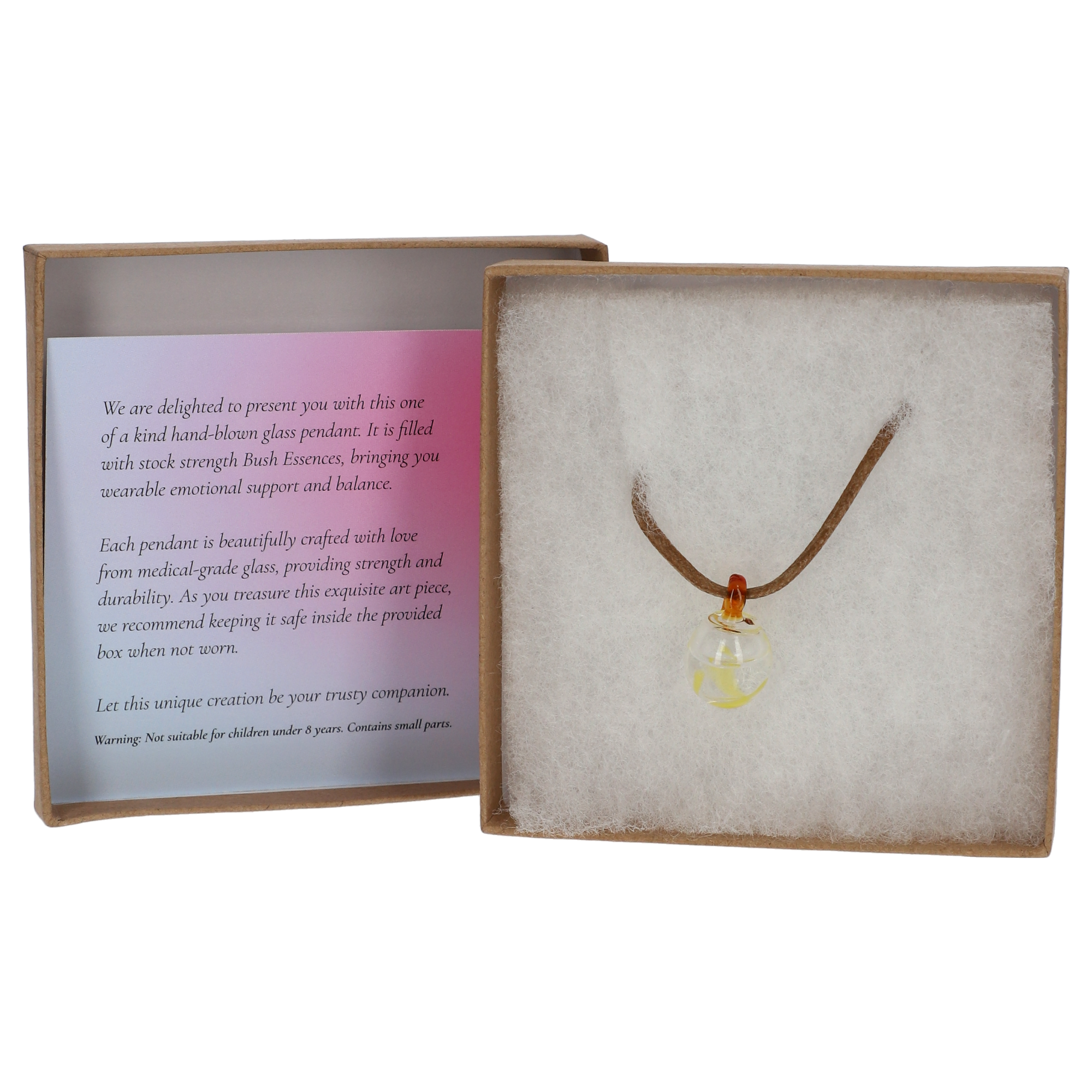empfehlen wir, die Petite-Anhänger nicht für Erwachsene zu verwenden. Merkmale und Größen: gefüllt mit Focus Essence in Originalstärke, mundgeblasenes Glas in medizinischer Qualität, verstellbare Kordel aus gewachster Baumwolle, ca. 20 mm großer Anhänger, 100 % in Australien hergestellt. Zusammenfassend ist der Focus Pendant Petite Anhänger von Australian Bush Flowers nicht nur ein stilvolles Accessoire, sondern auch ein praktisches Hilfsmittel zur Steigerung von Fokus und Klarheit. Ideal für Kinder ab 7 Jahren, vereint er Schönheit und Funktionalität in einem einzigartigen Design. Anwendung: Bei Bedarf um den Hals legen und tragen. Zusammensetzung: Focus Essence Hinweise: Außerhalb der Reichweite von Kindern aufbewahren. Zur äußerlichen Anwendung geeignet. Rechtlicher Hinweis: Essenzen und Schwingungsmittel sind im Sinne des Art. 2 der VO (EG) Nr. 178/2002 Lebensmittel und haben keine direkte, nach klassisch wissenschaftlichen Maßstäben nachgewiesene Wirkung auf Körper oder Psyche. Alle Aussagen beziehen sich ausschließlich auf energetische Aspekte wie Aura, Meridiane, Chakren etc. |